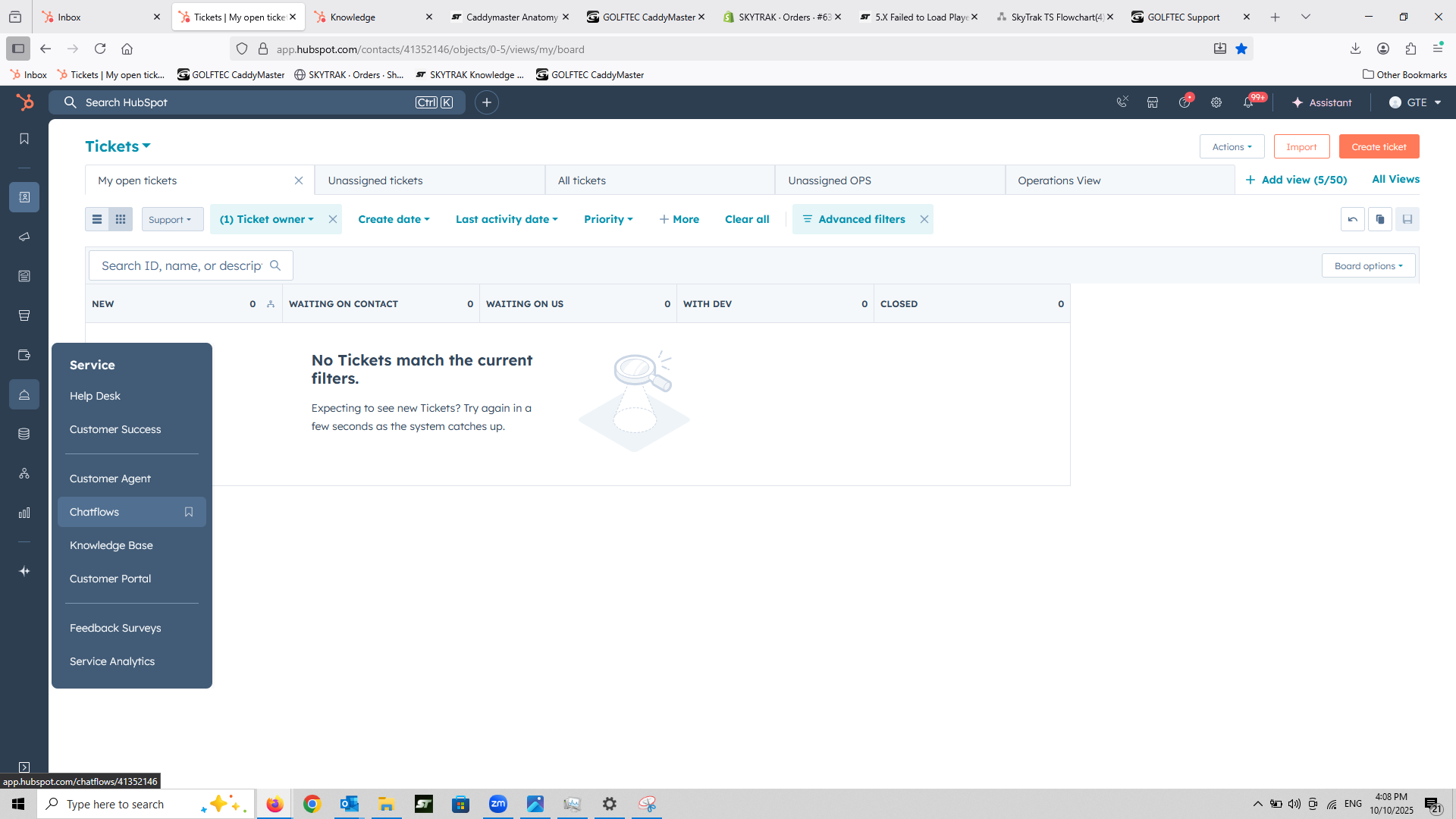 2. Identify the active chat flow for your department. You can do this by scrolling to the very top of any open or closed that.